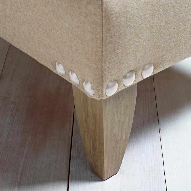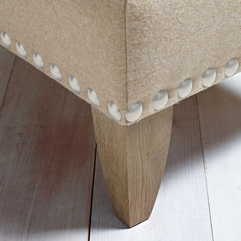 There are many ways to add a unique look to your bespoke footstool including a wide range of studded trims and piping options.