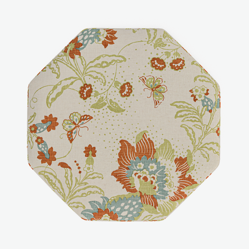 Warmley Octagonal Ottoman 60cm (24") in Rapture & Wright Phersephone Burnt Sienna - Top Edge Backtacked - 12.7cm (5") Turned Leg Oak - No Trim Cutout
